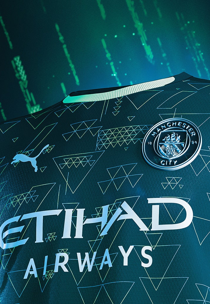 Man City are shaking things up, merging football culture with digital creativity through a special-edition collaboration with EA Sports. Featuring glitch-inspired visuals and holographic accents, this kit seamlessly blurs the boundaries between the real and virtual worlds.