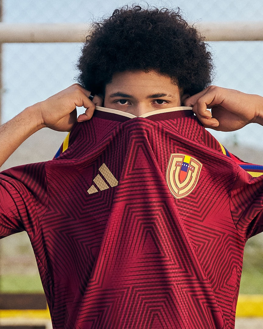Venezuela’s home kit soars with the essence of the Tepui mountains. A deep burgundy foundation commands attention, elevated by an all-over abstract pattern drawn from the region’s striking landscapes and contours. “La Vinotinto” is stamped proudly on the back collar, sealing the tribute to national heritage.